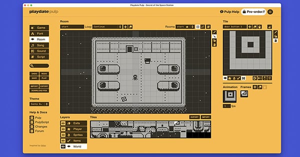 Pulp’s got plenty of tools for game-makers interested in “room-based, story-centric” games, but also has in-depth features for developers who want to dive into the Playdate’s unique aesthetic and crank mechanics. It’s got a graphics editor with animation, a sound sequencer, a sound effects creator, and more.